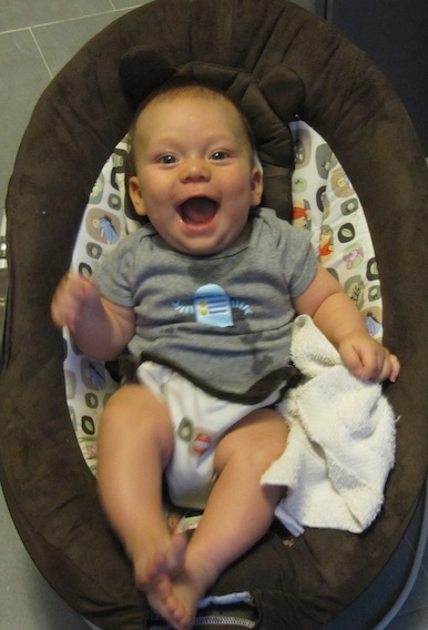 Rabbit was sick all weekend and Monday too, which took us back to the newborn days of sleeplessness. He wouldn't sleep in his crib, and wanted to nurse every 20 minutes. And he needed to be held ALL THE TIME. The only place his was happy was in the tub, which was not super convenient for anybody.